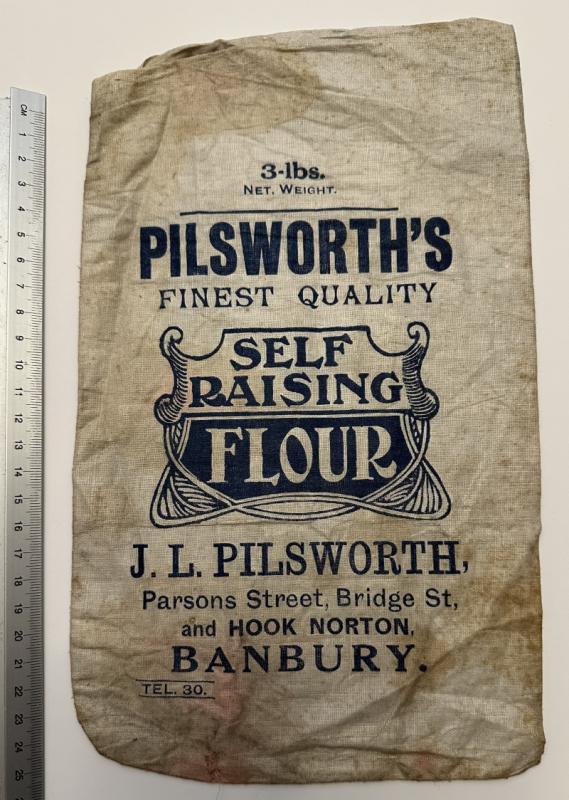 3 tea or coffee bags and 1 self raising flour bag from Pilsworth of Banbury and Hook Norton