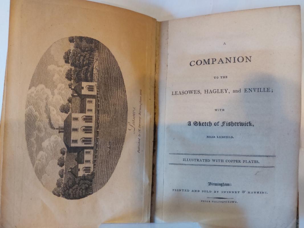 12mo, 130 [2]pp publisher's list at end, closed tear to final leaf with neat repair, frontispiece remounted, later, inscription to front end-paper by Frank Somers (local industrialist of Somers Forge) Otterburne Court, Halesowen dated 1935, frontispiece showing Leasows, further plates of Hagley, and Enville (Halls), very scarce