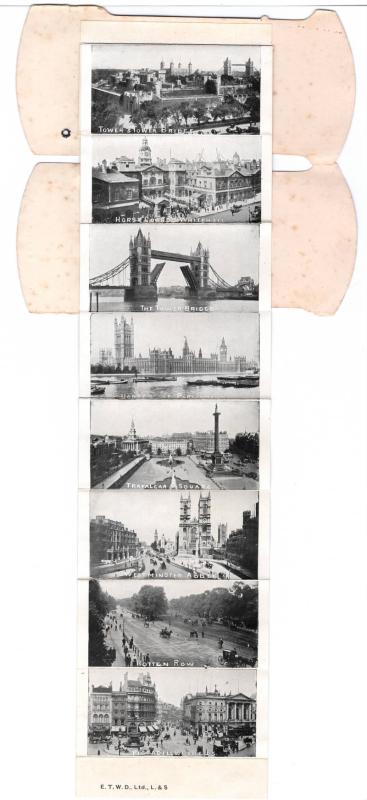 A printed booklet, approx. 13 x 6cm. when folded, opening out and with a folding plate with 12 photographic views of London, the folding plate approx. 41 x 7 cm., back of folding plate blank, printer's details to foot of plate; minor rubbing else in very good condition.