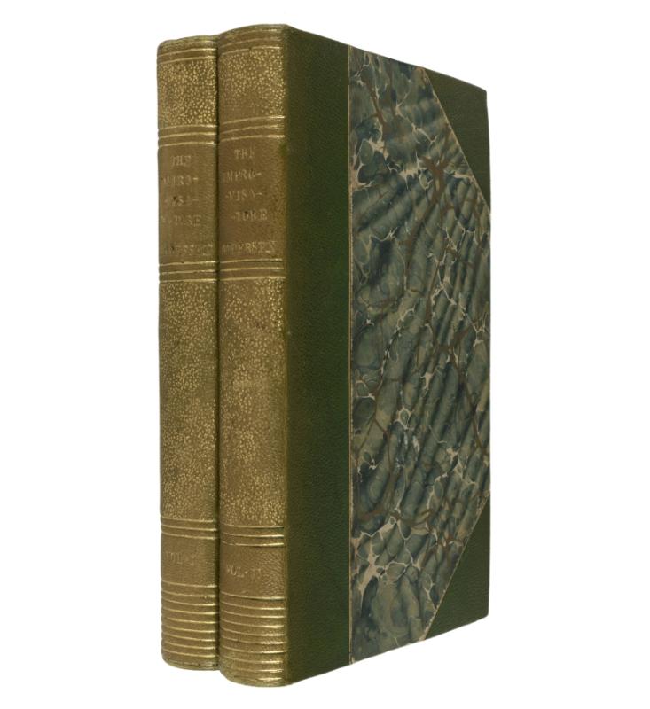 Handsomely bound in contemp. half green calf by Hatchards of Piccadilly, matching green cloth boards, spines directly lettered & with compartments in gilt; spines uniformly faded to brown. With the original cloth bindings bound at the end of each volume.