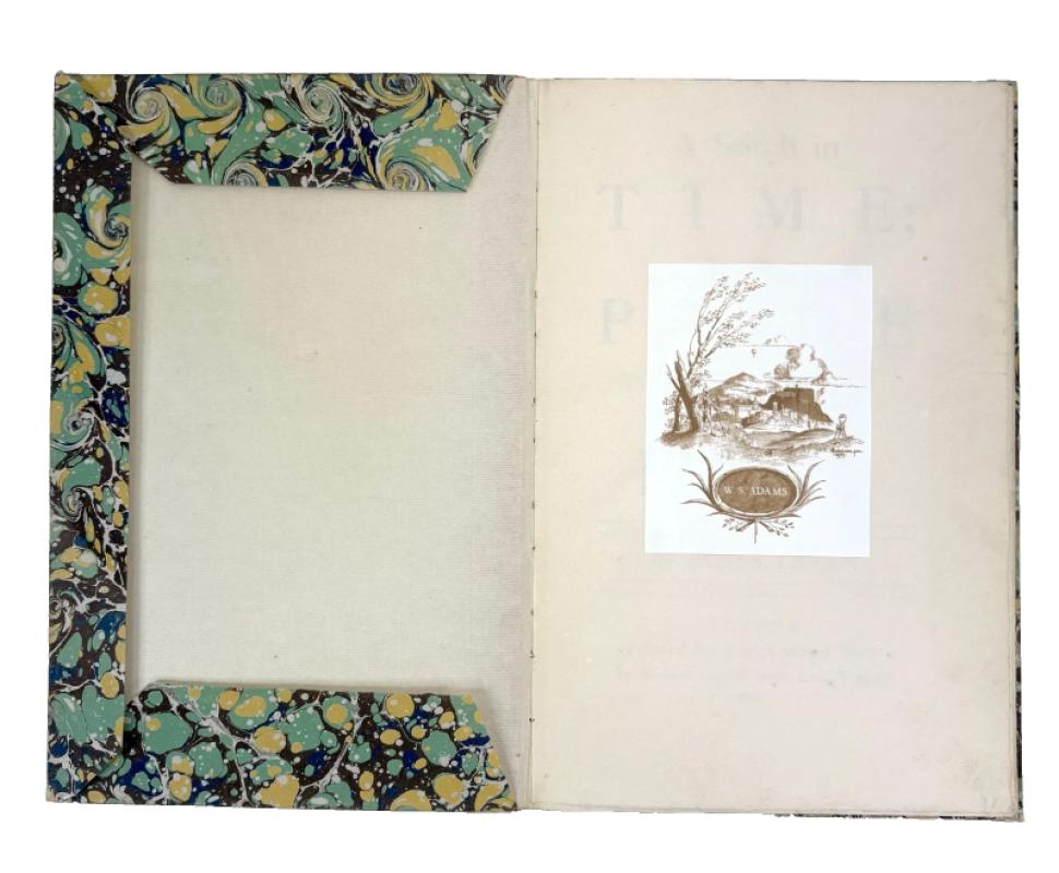 The present copy, number 1367, retains its original stiff boards with the distinctive marbled paper dustjacket and printed title label, a format typical of Nonesuch publications of the period. The text is printed on high-quality laid paper and remains bright and clean. A later pictorial bookplate of W.S. Adams, signed "Runciman pinx. 1973", is affixed to the front free endpaper, adding a discreet note of later provenance.