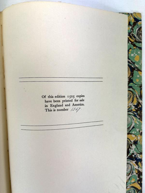 Printed for the Nonesuch Press, by Richard Clay & Sons, Ltd., Bungay, 1927. "Of this edition 1525 copies have been printed for sale in England and America. This is number 1367."