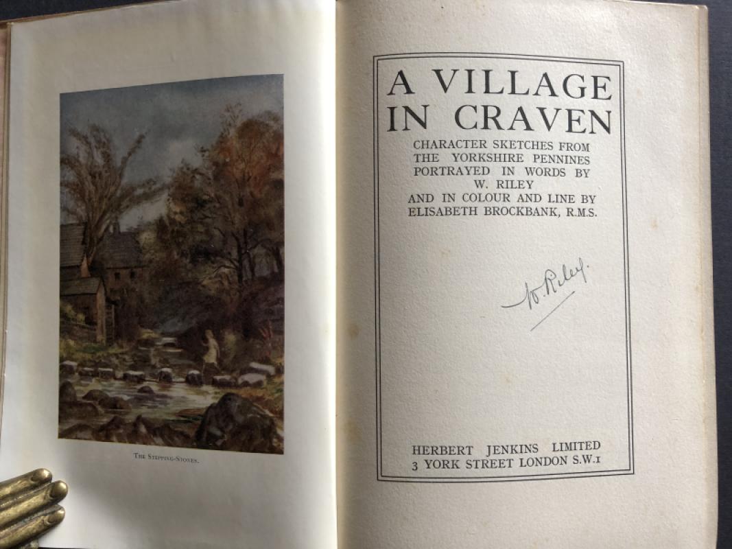 The sub-title of this book is : Character Sketches from the Yorkshire Pennines Portrayed in Words by W. Riley and in Colour and Line by Elisabeth Brockbank R.M.S. Not just an attractive volume in itself it gives a colourful & sympathetic foray into the daily life of Yorkshire people and some of the characters who people this diverse county.