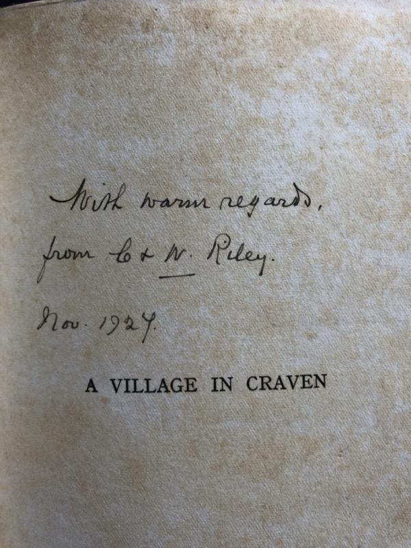 It is signed by the author 'W Riley' on the title page & there is a dedication on the half title page : 'With warm regards from C & W Riley Nov 1927'