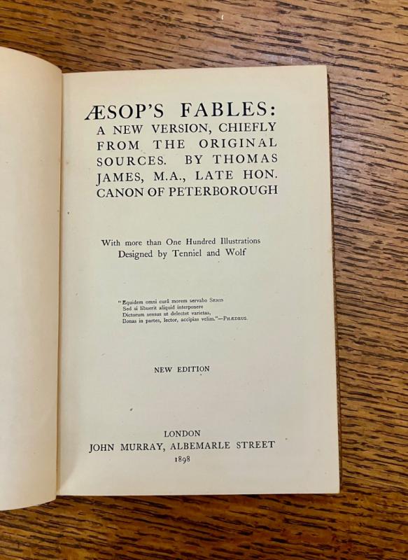 AESOP'S FABLES. A new version, chiefly from the original sources. By Thomas James, M.A. --- With more than One Hundred designs by Tenniel and Wolf. New Edition.