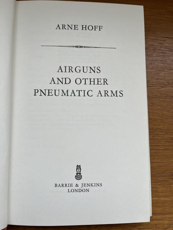 Airguns And Other Pneumatic Arms - The Arms & Armour Series’ ~ by Arne Hoff; pub by Barrie & Jenkins, London 1972; with jacket, large 8vo, 120pps + 40pps of b&w photos/illustr; jacket has small tear at bottom, book in vg condition.