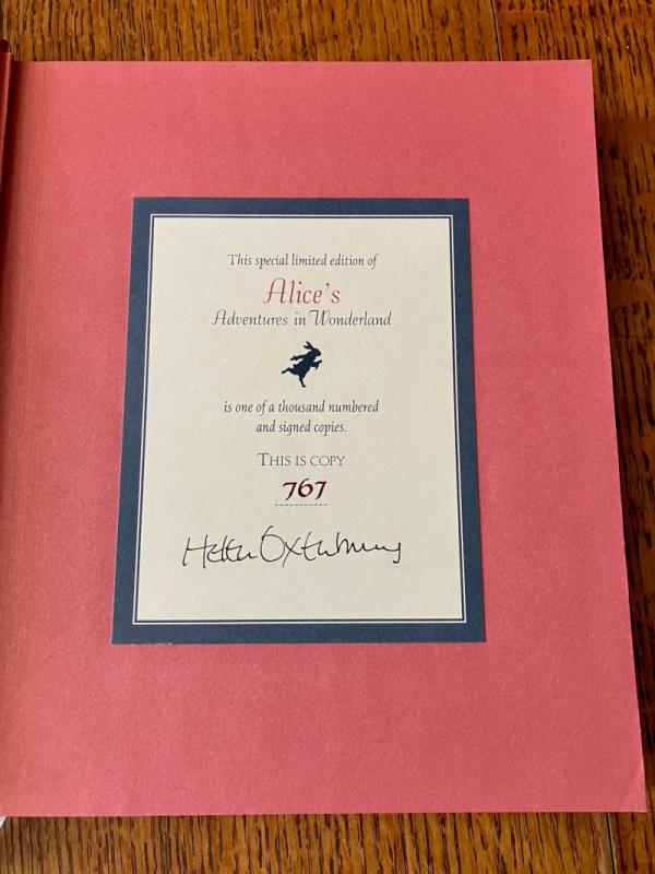 LIMITED EDITION. One of 1000 copies signed and numbered by Oxenbury on label attached to the front free endpaper. This copy number 767. Large 8vo. (9.6 x 8 inches). Fully illustrated throughout with 56 colour plates, some double page, and several small line drawings amongst the text. Original burgundy spine, lettered in white. Paper covered boards with full colour illustration of Alice and the March Hare on front panel. Grey cloth bookmark. Housed in a burgundy cloth slipcase with colour plate on front panel, reproducing the image from the front board. Very good bright copy of this fabulous edition. Winner of the Kate Greenaway medal.