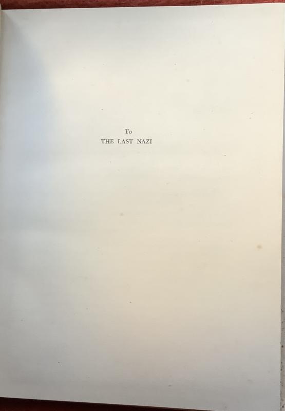 A copy of the First Edition of a book which was begun a year after the War had begun and published a year later dedicated 'To the last Nazi'.