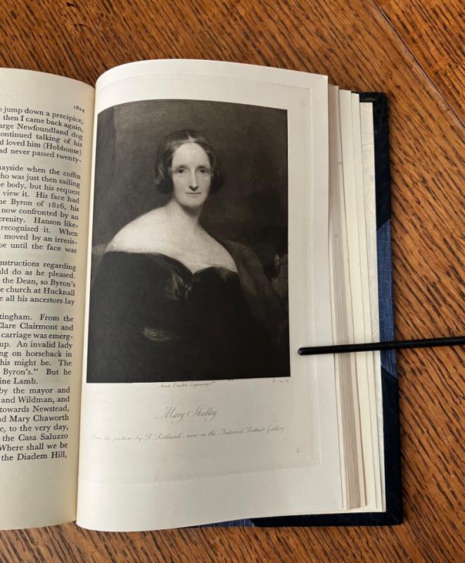 FIRST ENGLISH LANGUAGE EDITION. Published the same year as the French edition. 8vo. (8.8 x 6.1 inches). Extra illustrated with 12 full page 19th century engravings, including portraits of Mary Shelley, The Prince of Wales, Thomas Moore, Ali Pacha, and a charming view of The Hellespont, showing Sestos and Abydos, to compliment the 11 full page plates published in the book. A Fine copy in a fine late twentieth century leather binding of half dark blue morocco. The spine with raised bands, decorated with gilt dotted lines. Compartments ruled, decorated and lettered in gilt. Blue cloth on boards. Marbled endpapers. Top edge gilt. Neat previous owner bookplate on the front pastedown endpaper. A wonderful copy. The binding is unsigned but is certainly the work of a master bookbinder.