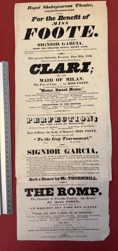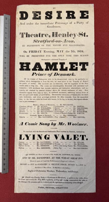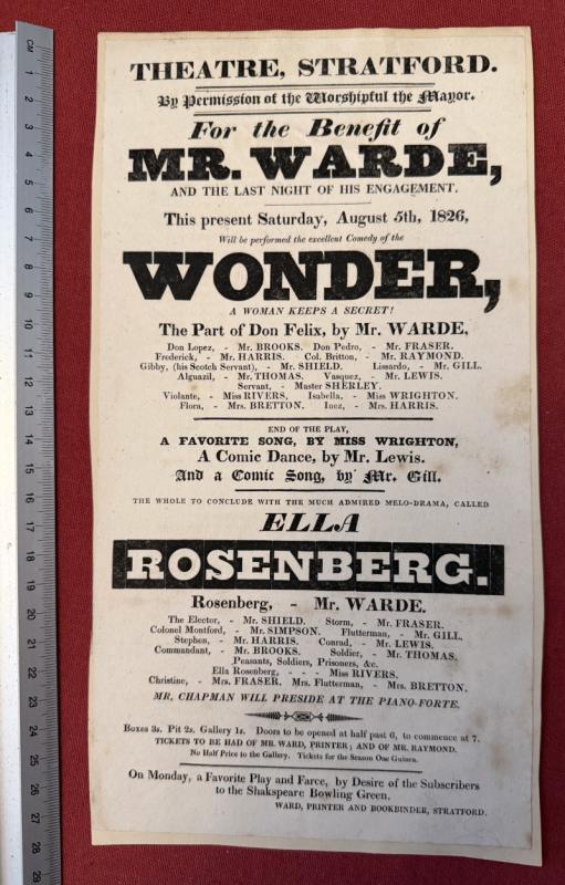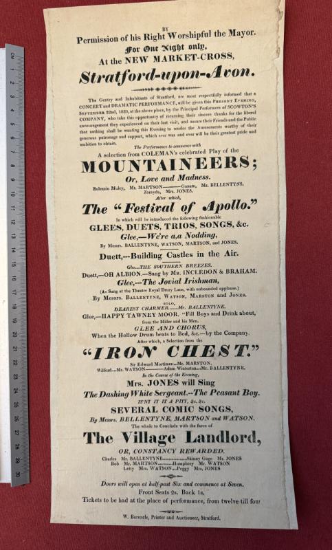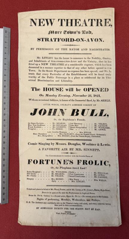 Collection of six theatre posters from Stratford on Avon 1821-1830