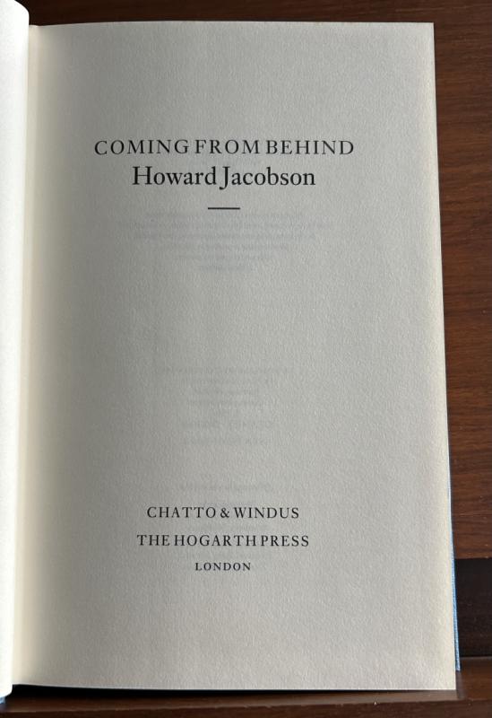 Coming From Behind, Howard Jacobson, Chatto & Windus/Hogarth Press, 1983, First Edition, First Impression