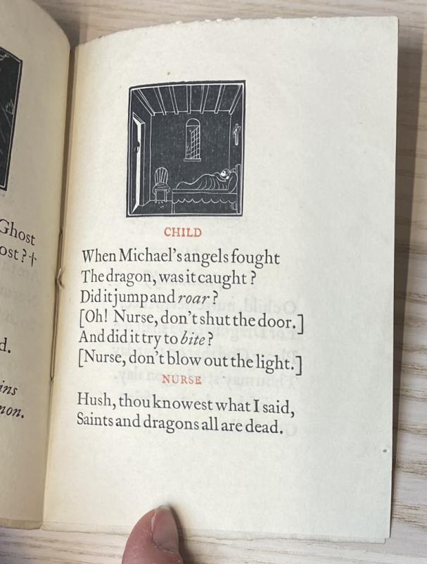 A scarce first issue dated 1916, with red George and the Dragon illustration to front cover. Publisher's wraps bound with string. Some age-toning to covers, corners very lightly curled, edges untrimmed resulting in protrusion. Binding is strong and pages remain bright, without spots or significant handling marks. One spot of residue to inner rear cover. Illustrated with five engravings by Eric Gill. A very scarce example of the true first issue, published during Gill's formative years spent in Ditchling.