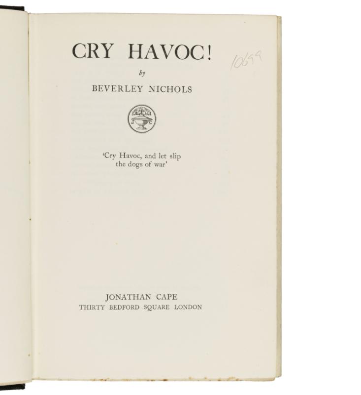 It would be a mistake to see Nichols’s prolificness, range, and position-switching as evidence of fickleness or indiscipline. Rather, they are a result of his being a ‘man of the time’ during one of the most confusing and protean periods of history. His great, epistolary, argument for pacifism is thought provoking. The inscription is apt, but Nichols was about to discover how mad the world could be, and Nichols reconsidered his opinions on the matter as a result of the rise of Hitler.