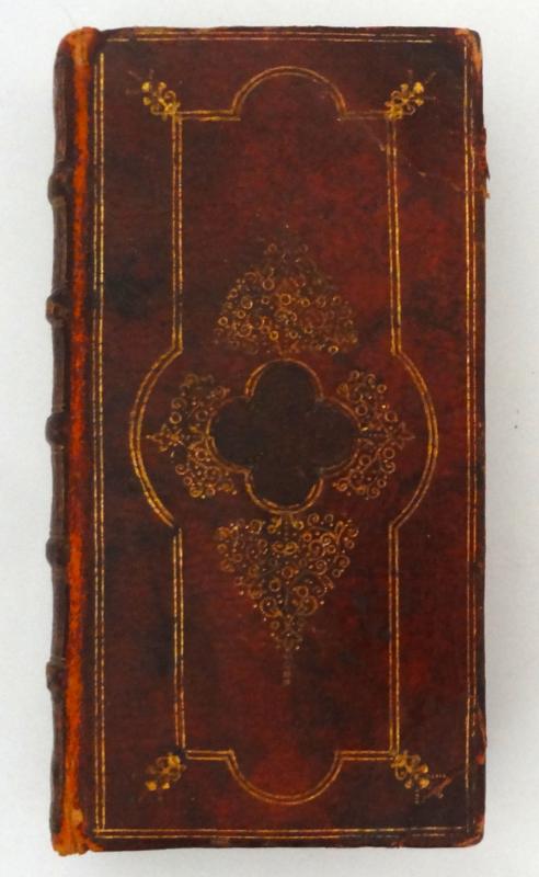 In beautiful contemporary French morocco binding by Macé Ruette. Covers double gilt ruled with second panel incorporating semi circles on each side. Gilt fleurons to corners of the inner panel. Inlaid brown morocco centre-piece within a central arabesque of finely worked scrolled and pointillé tooling. Spine has five raised bands, double gilt ruled in compartments wit a fleuron of gilt pointillé tools at centres. Edges gilt ruled. Dentelles gilt. 12mo. 447pp. All edges gilt. Lacks title page.