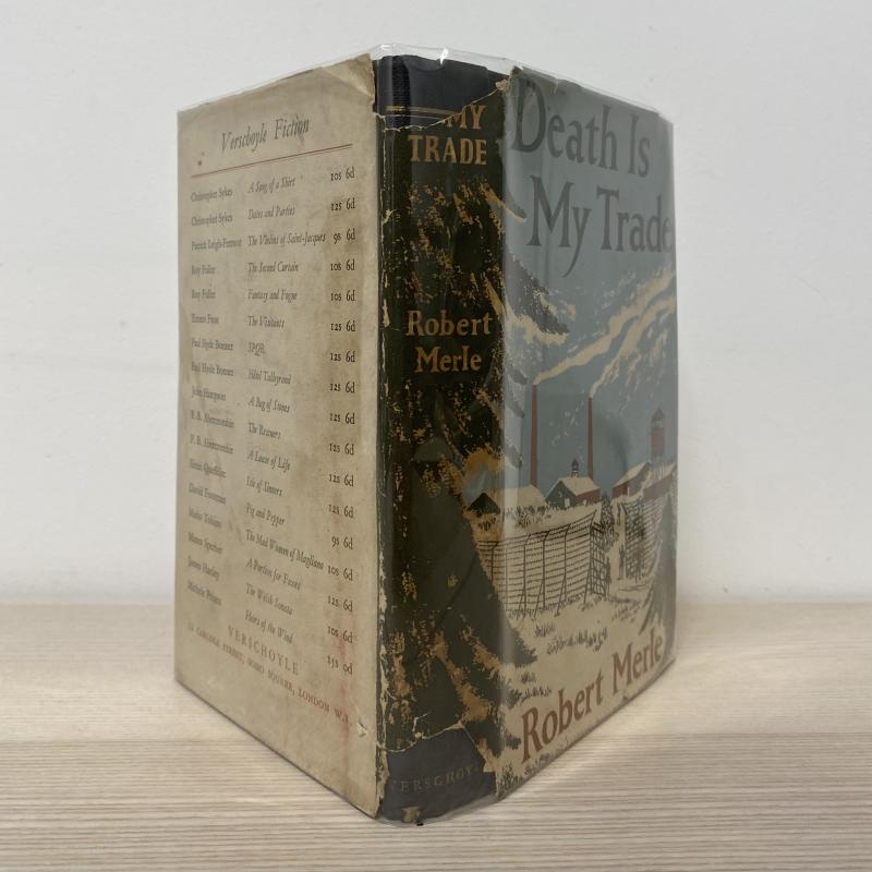 First edition, first impression, scarce in any edition. Presented in an unclipped dust wrapper. The wrapper with significant loss to the head and tail of the spine, and 3" of loss along the front edge. Rear panel soiled and toned, front panel a little tired, with a few scuffs and small closed nicks to the edges. The book is significantly warped, with the edges curled and spine cocked. Internally, binding is firm. Clean of ownership inscriptions. Pages are bright and smart. A very scarce example of this work, a novelised interpretation of the early life of Rudolf Hoss and his subsequent leadership at Auschwitz during the Holocaust.