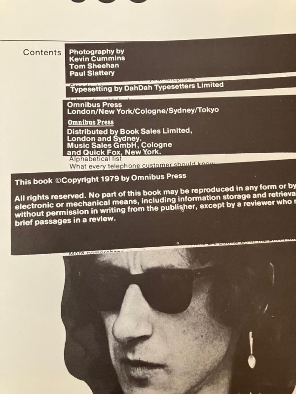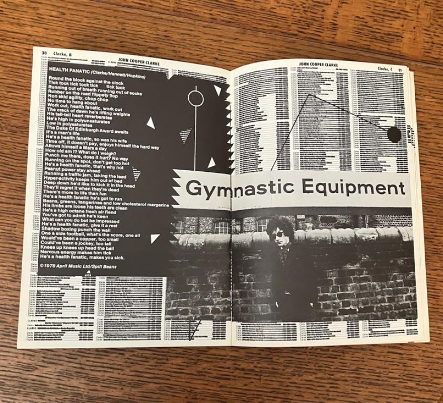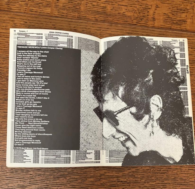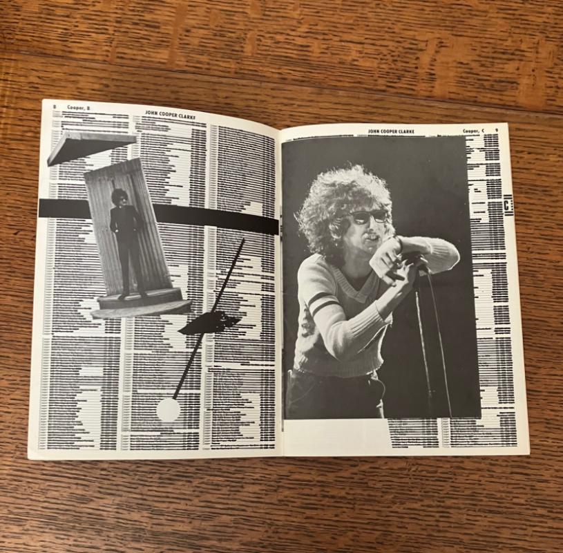 FIRST EDITION. 1st printing. 8vo. Paperback. 48pp. (10 x 7 inches). Illustrated throughout with black and white photographs by Kevin Cummins, Tom Sheehan and Paul Slattery. A very good copy with some very minor rubbing to the edges but generally bright and tight. Contains 12 poems and 22 photo's overlaid onto the Cooper and Clarke pages from the telephone book. J. C. C's first book of Poems which includes a few that were later included, in slightly edited and altered versions, in his epic Ten years in an open necked shirt, 1983.