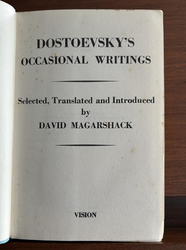 Dostoevsky's Occasional Writings, Selected, Translated and Introduced by David Magarshack, Vision Press Limited, 1964, First Edition, First Impression