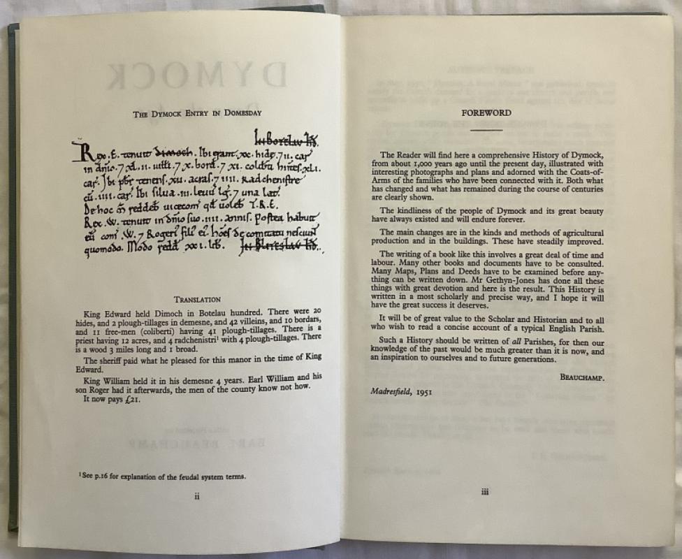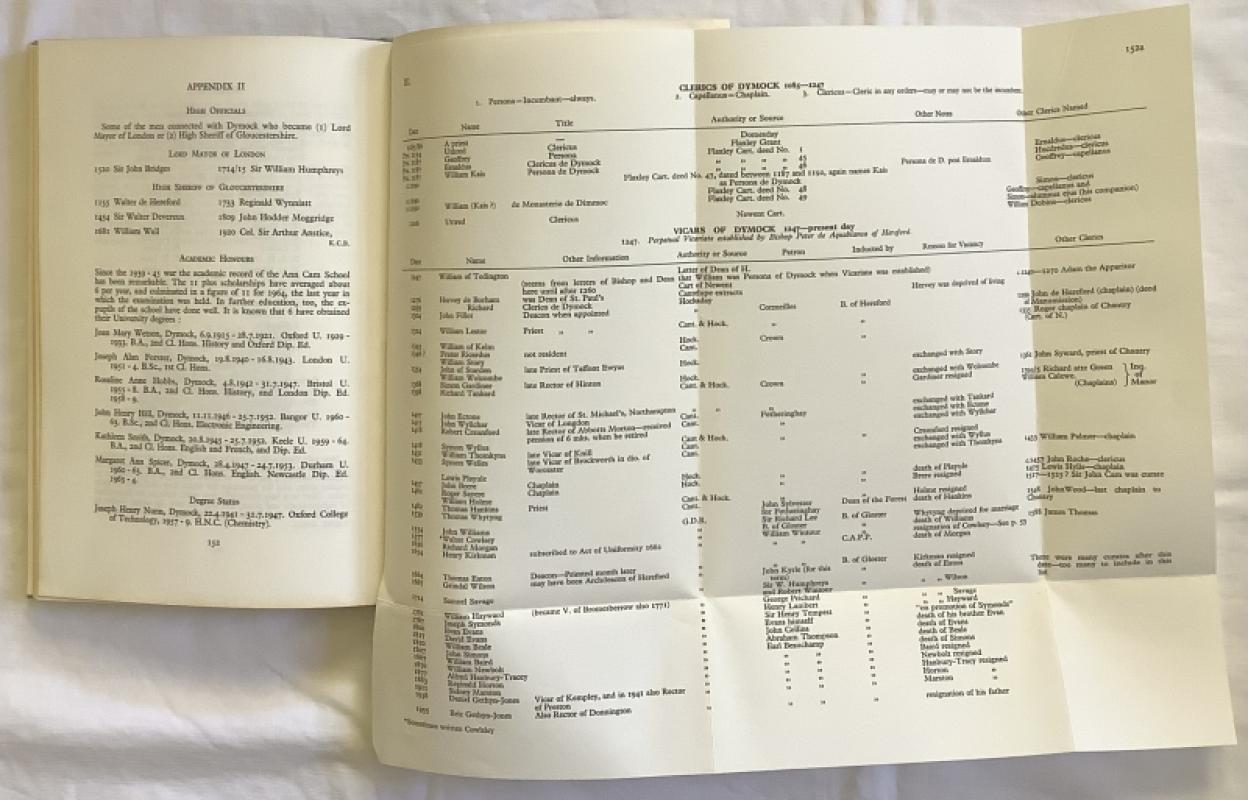 Light blue cloth with blue titles. Endpaper maps of the area , fold over lists of Boteloe Hundred and Clerics and Vicars of Dymock.