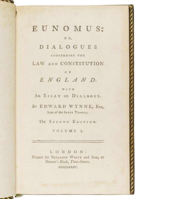 Eunomus: or, Dialogues concerning the law and constitutions of England with an essay on dialogue. The second edition. In four volumes.