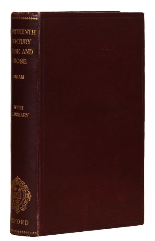 2 works bound in one volume (as issued by the publisher), octavo (182 x 122mm), pp. xlvii, [1 (blank)], 292; [4 (title, abbreviations, note, ‘Principal Variations of Form or Spelling’)], [164]. Title for Sisam with publisher’s device and double-ruled frame; title for Tolkien with ruled frame surrounded by ornaments (vide infra), three-ornament rule before imprint. Original dark wine-red cloth, spine lettered and with publisher’s device and ornamental rules in gilt, boards with blind-ruled frame. (Extremities lightly rubbed and bumped, light offsetting from pastedowns onto first and final ll.) ¶¶¶