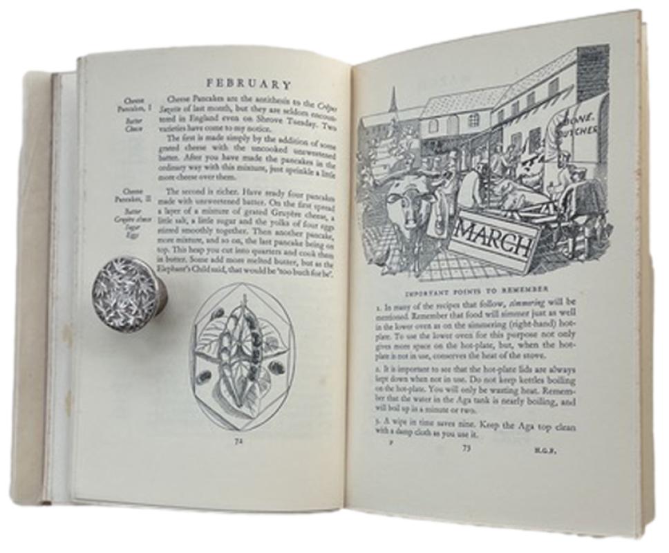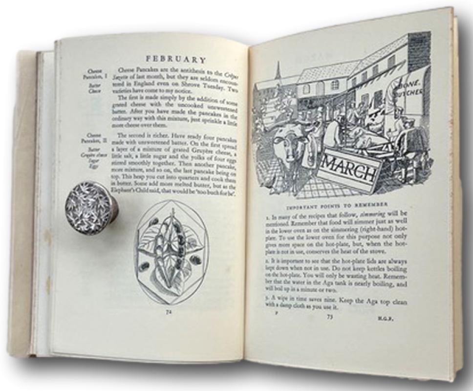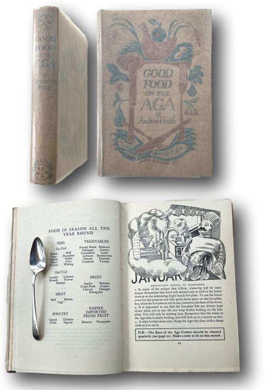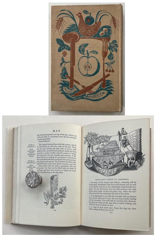 An excellent "Collectors Copy" of the very scarce First Edition generally in exceptional condition though with several text pages foxed as usual. A superb decorative title page and lovely monthly chapter headings all happily unblemished plus numerous head and tailpieces throughout the text by Edward Bawden. Notes on Aga maintenance + a chapter on Jam Making,Fruit & Vegetable Bottling and Bread Making from Miss M. Frood, M.B.E., of the Helena Club in London. The AGA, which was invented in Sweden in 1922, was introduced to the UK in 1929, and the book begins with an illustrated instruction manual before proceeding with the recipes