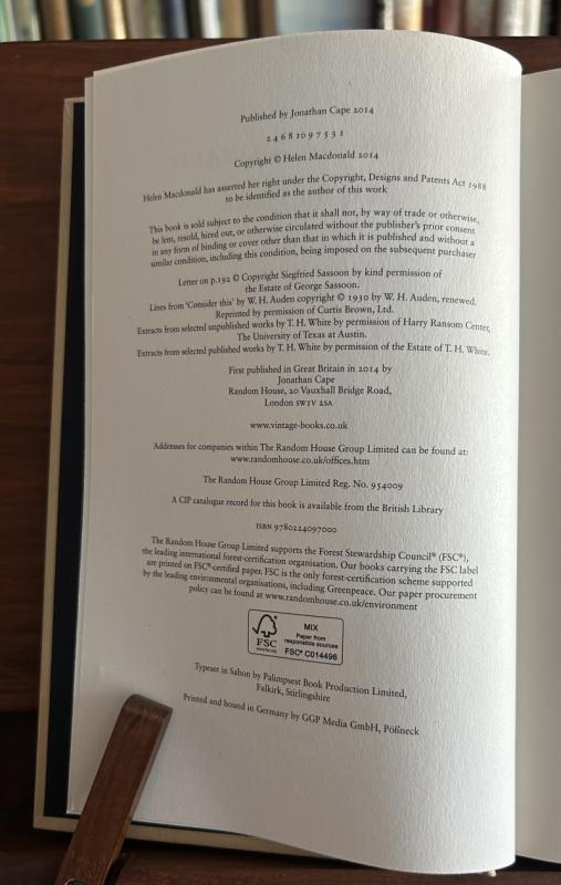 H is for Hawk, Helen MacDonald, Jonathan Cape, 2014, First Edition First Impression, Very Rare