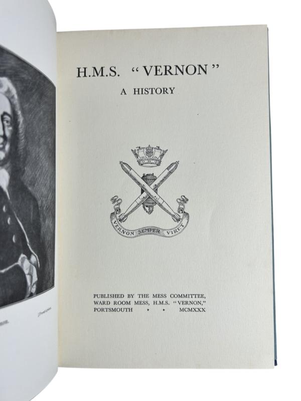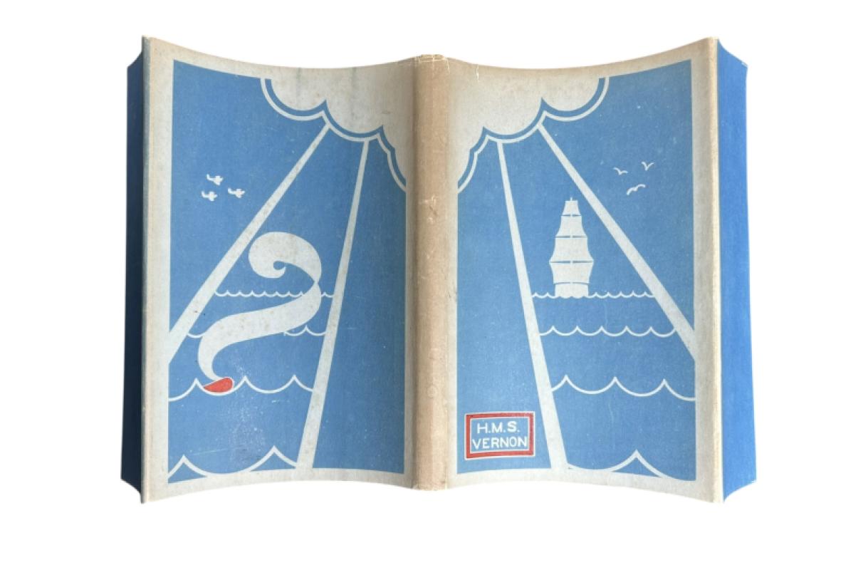 Portsmouth: The Mess Committee, Ward Room Mess, H. M. S. Vernon, 1930. First and only edition. This is a near fine copy. Illustrated in the striking dust jacket, the artist of which is not credited. It has some small closed tears to the top edge and some spotting to the verso. Not priced. In the blue buckram as issued, with gilt titling to the front panel – some light bumping to the spine tips. The text blocks are free from foxing, and internally, this book is very clean. This copy is, overall, in near fine condition, and remarkably scarce.