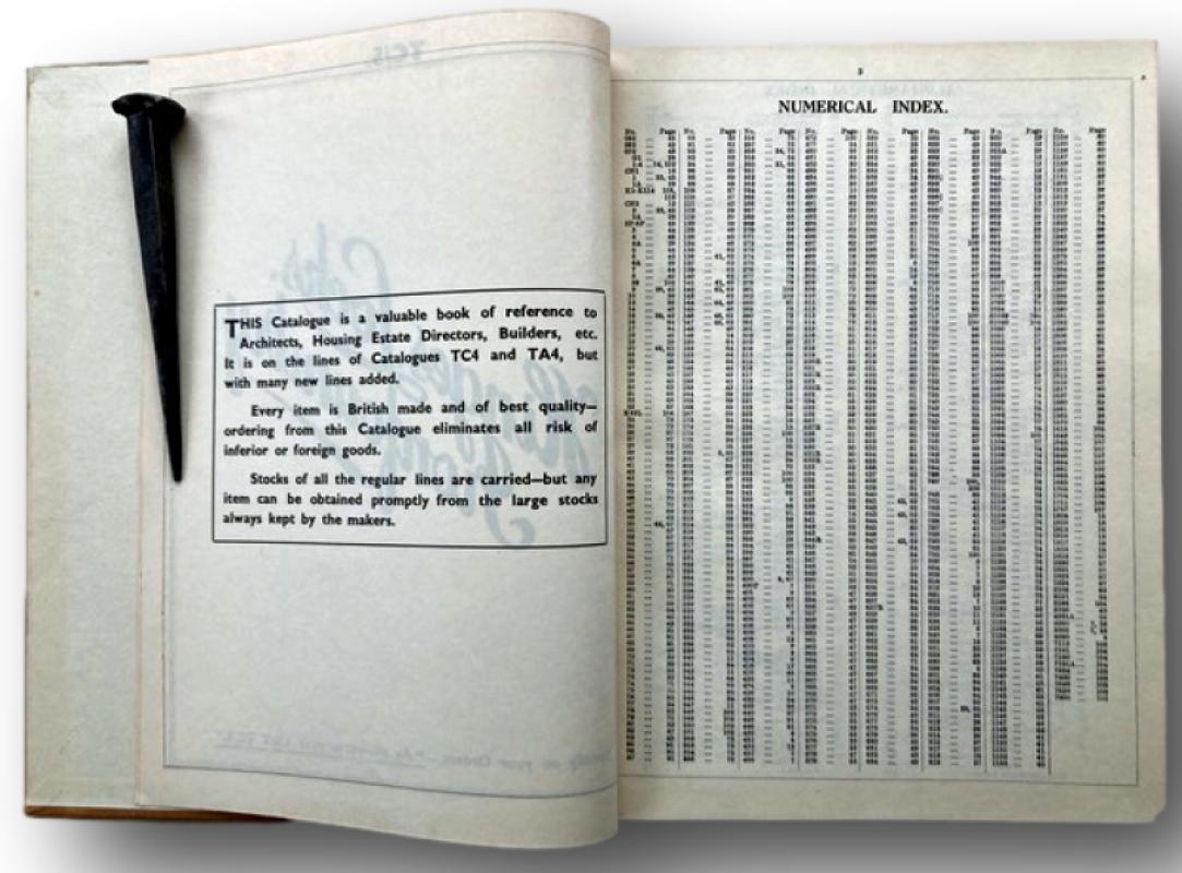 Trade Catalogue and Price List designated TC5A ist July 1939 both items in umarked unblemished condition. Quarto publishers cloth 10"x8" 115 pages engraved illustrations throughout and printed by McCorquodale's Newton Willows.