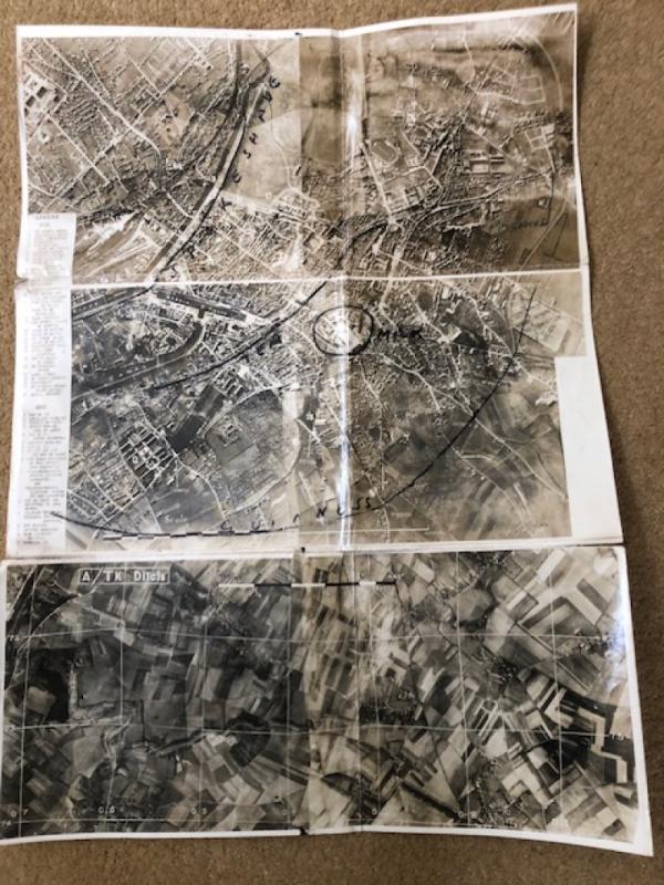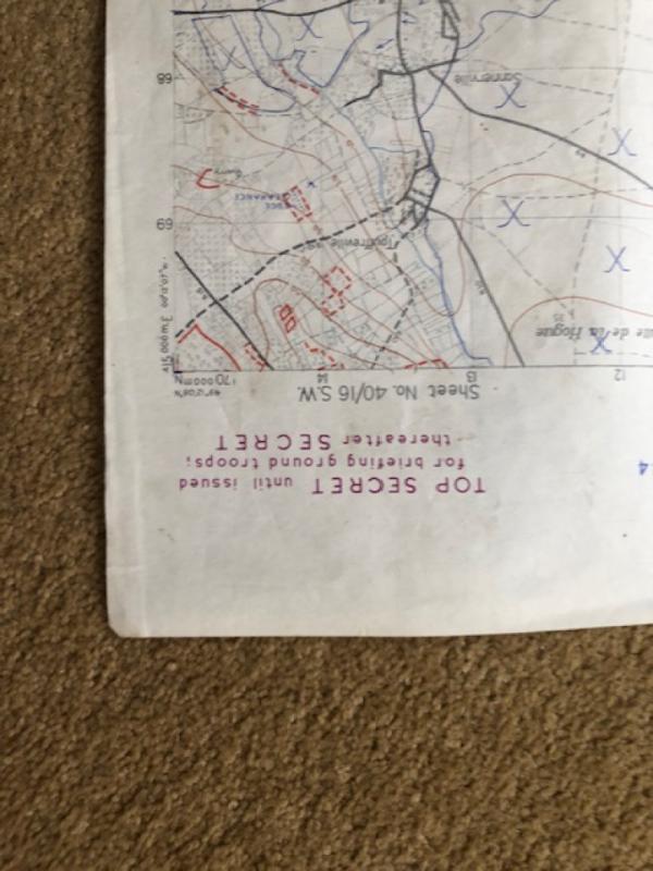 IMPORTANT ORIGINAL "TOP SECRET" INVASION MAP OF CAEN 1:25,000 WITH LARGE ORIGINAL AERIAL PHOTOGRAPH