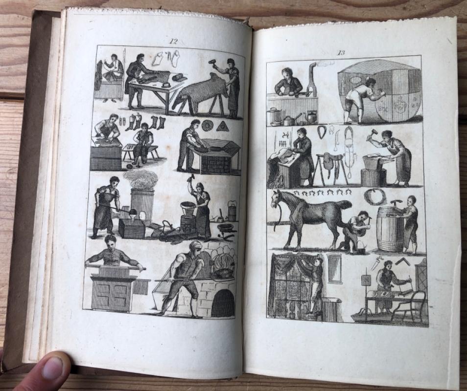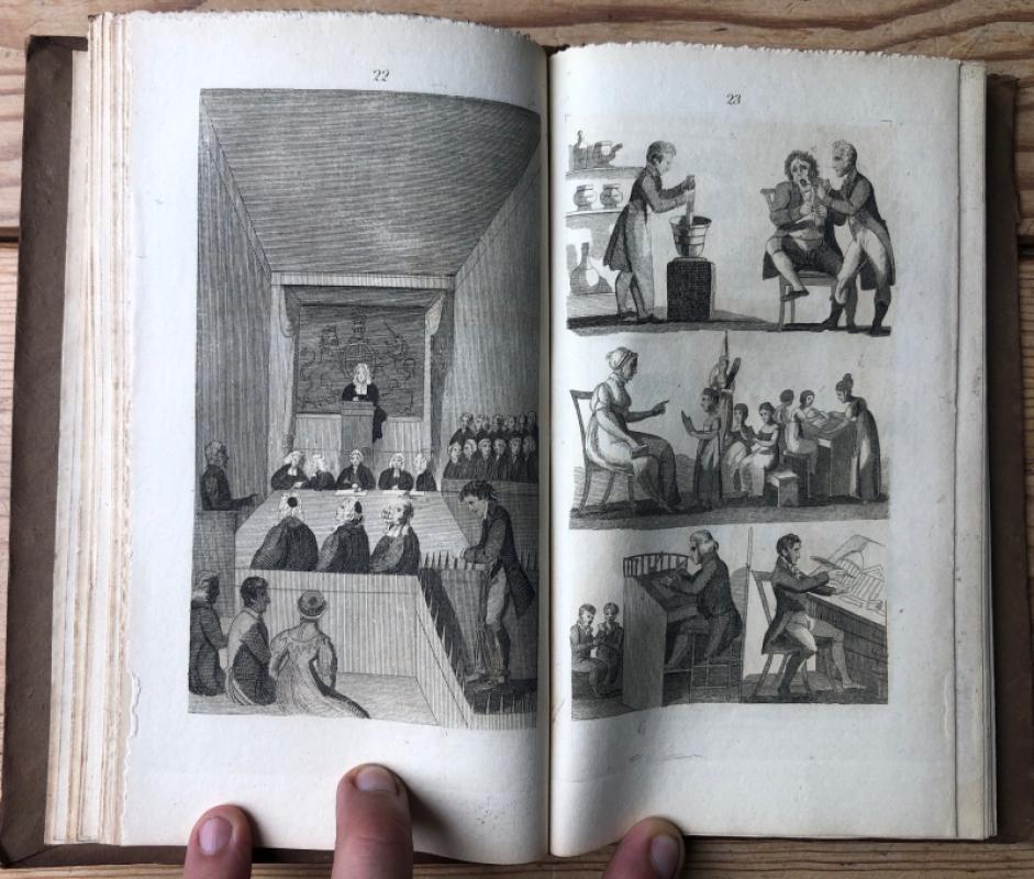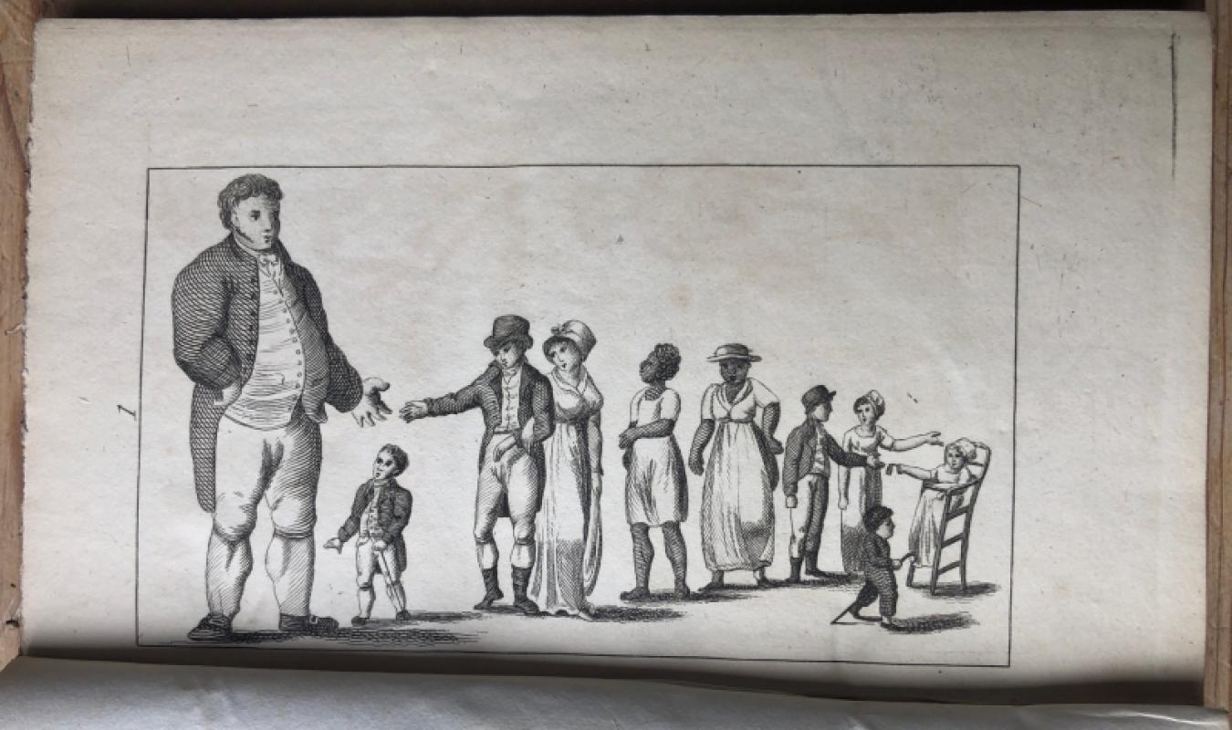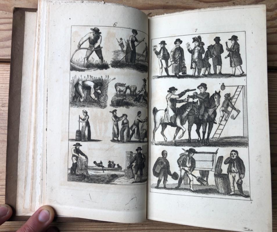 "Joseph Watson (1765-1829) worked for Thomas Braidwood (1715-1806) from 1784, and became headmaster of the London Asylum for the Deaf & Dumb in the Old Kent Road. In Instruction of the deaf and dumb Watson wrote that “Persons born deaf are, in fact, neither depressed below, nor raised above, the general scale of human nature, as regards their dispositions and powers, either of body or mind.” He considers what language is, and describes how he goes about “communicating a knowledge of language to the naturally deaf and dumb.” The second part of the work, sometimes printed in a separate volume (1810), has lists of vocabulary and plates designed to encourage a child to acquire an understanding of written & spoken language. The illustrations in the volume of plates are delightful glimpses of everyday life in Georgian England. Individual pictures are not labelled, so this meant children were not restricted to learning one set term for an object or scene." (internet article by H Dominic W Stiles (Univ. College of London, 2013)).