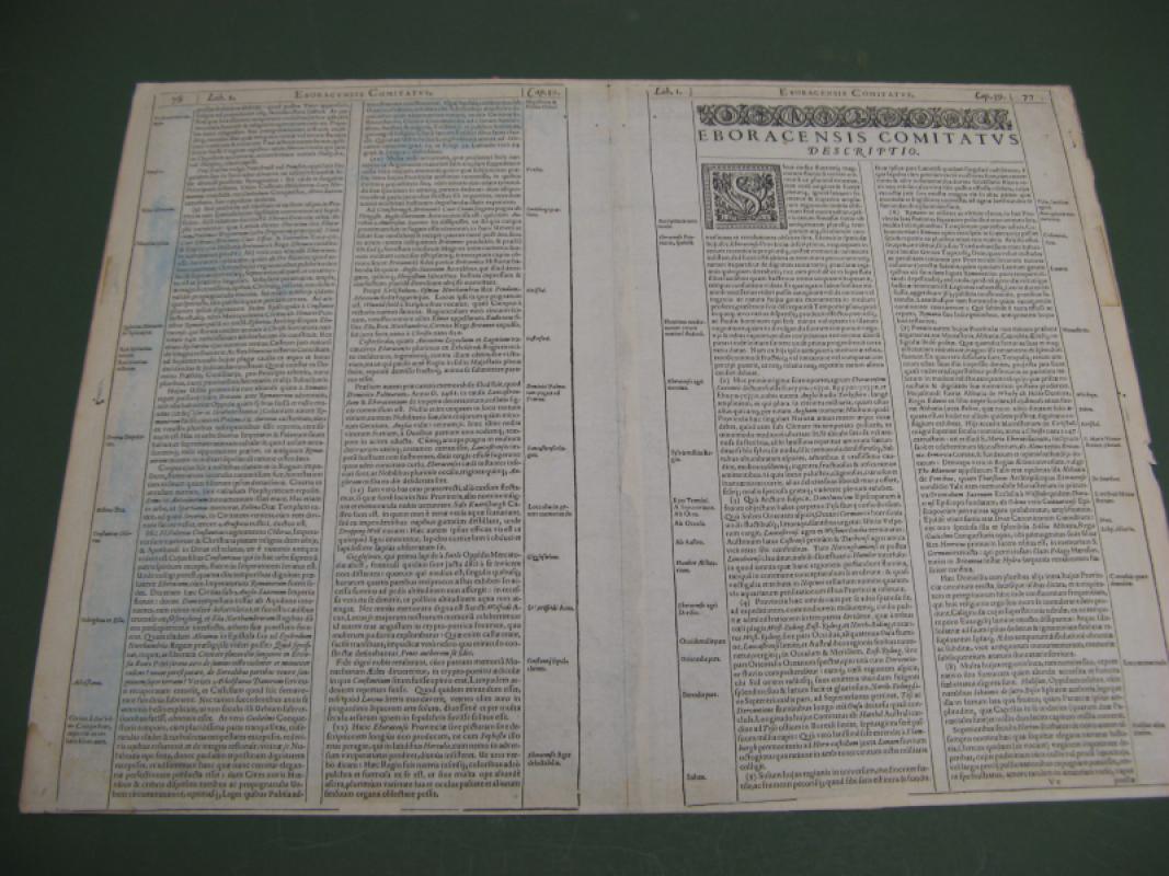 C1611 1ST PRINTING/EDITION OF JOHN SPEED MAP OF THE WHOLE OF YORKSHIRE HAND COLOURED GOOD CONDITION