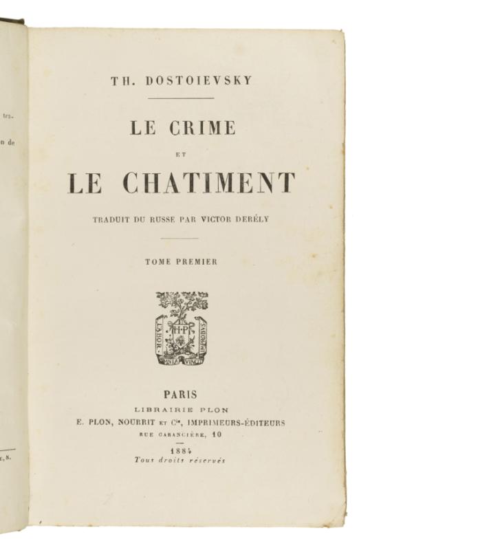 Prestuplenie i nakazanie, 1866. The first French edition, from which the first English edition was translated.
