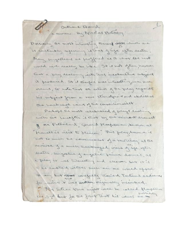 Manuscript Review of Sutton Vane’s ‘Outward Bound’, c.1923