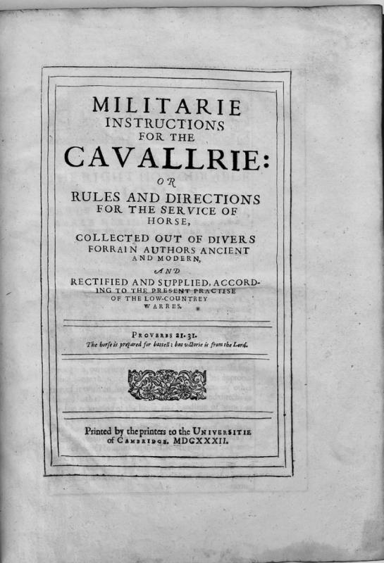 Militarie Instructions for the Cavallrie: or Rules and Directions for the Service of Horse, Collected Out of Divers Forrain Authors Ancient and Modern, and Rectified and Supplied, According to the Present Practise of the Low-Countrey Warres