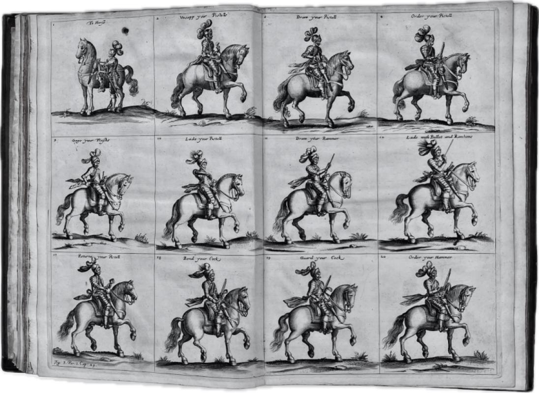In his preface, To the Reader, Cruso points out “Of making many books there is no end, said the wise King... but is it not strange that hardly any hath fully handled that which concerneth the Cavallrie?” He attributes this to the fact that most earlier writers such as Vegetius, Valturius, Aelian et al., had taken classical Greek and Roman authors as their model, where, because of a lack of saddle, stirrups and sometimes bridles, the mounted soldier was ineffective. However, since the development of the pistol, the cavalry was now properly armed and can be an important part of any army. This is the first book to instruct the mounted soldier on the use of firearms, thereby materially advancing the use of the cavalry in military tactics.
