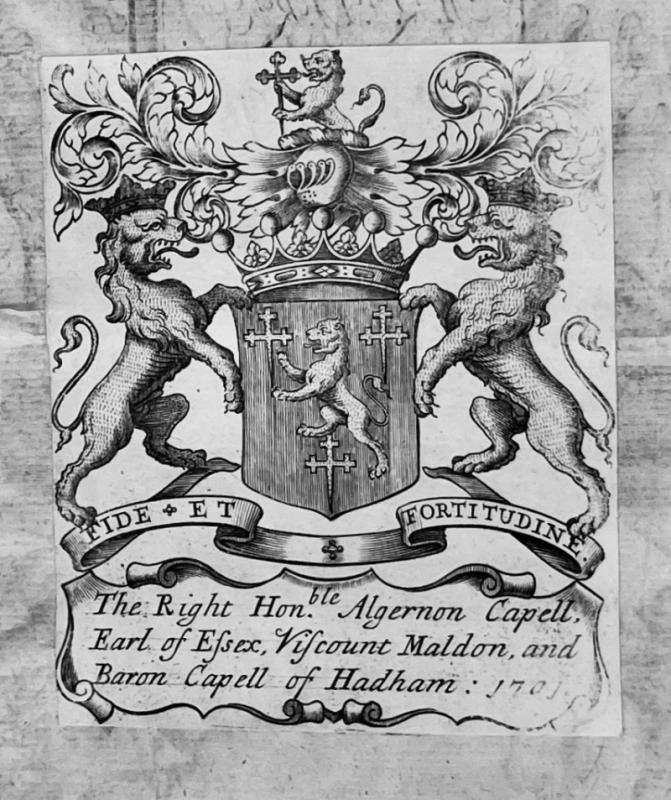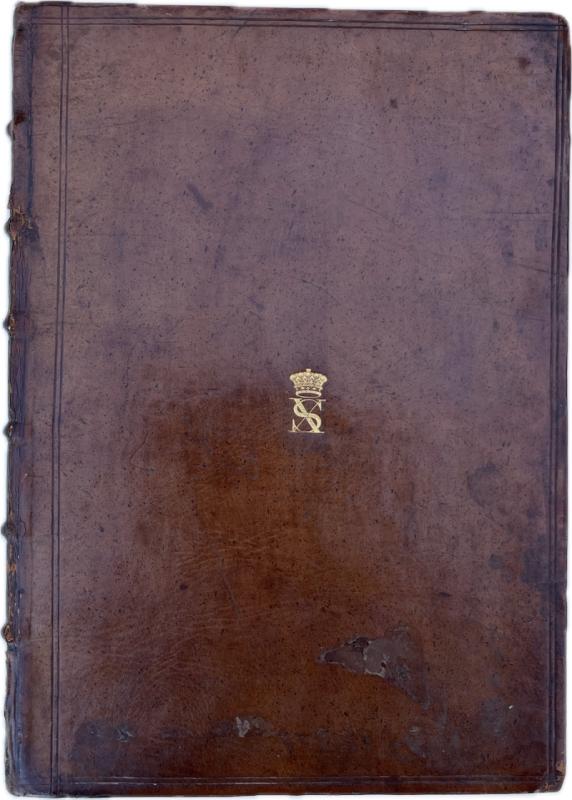 Folio, A-O4, P2, C1 mis-signed “B”, engraved title, 16 plates, some folding, plate 3 bound in two double-page sections, 17th century full calf, fully gilt spine, 2-line fillet borders, part of an early vellum manuscript as a sewing guard, crowned “SX” in gilt on front board, edges stained red, very small paper flaw in plate 11 not affecting legibility, expertly and unobtrusively re-backed some considerable time ago with the old back laid on, short crack to top of front hinge, armorial ex-libris of the Earl of Essex on verso of engraved title, book-plate of “Mark Dinely” on front paste down and of “Dr. & Mrs. H.R. Knohl” on front fly.