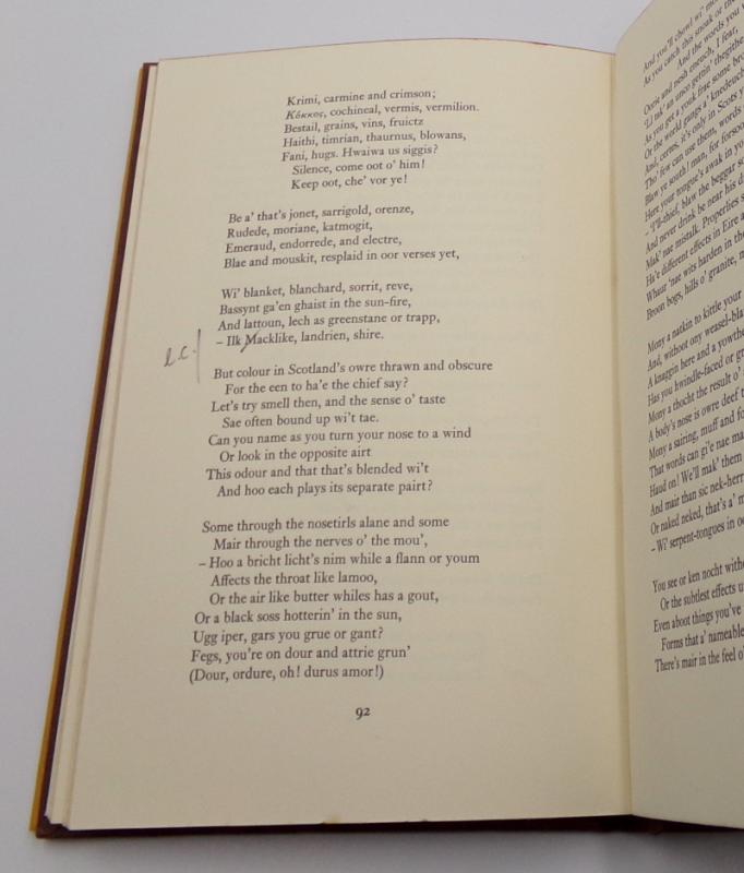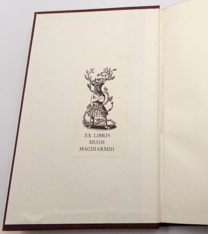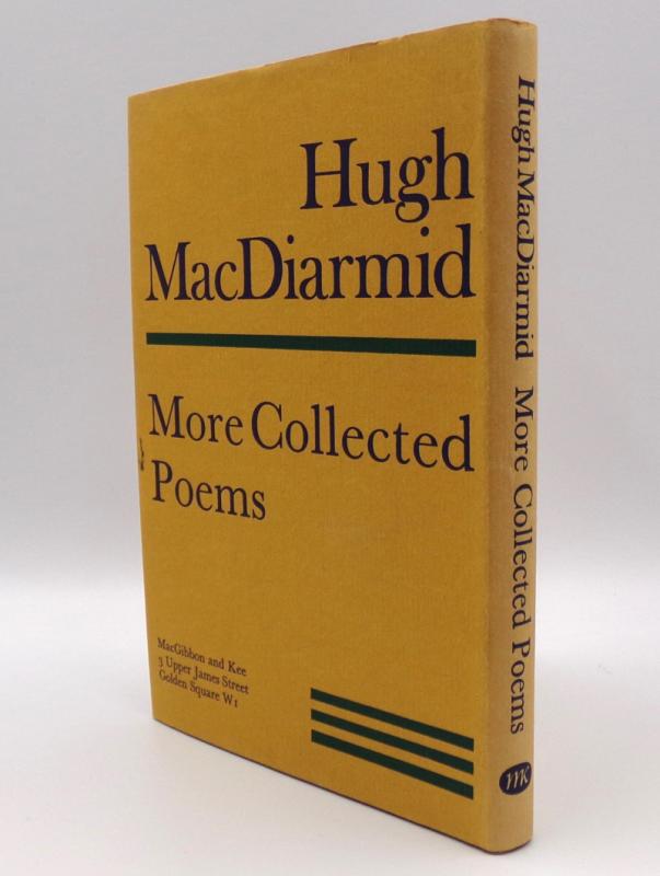 MACDIARMID, Hugh. More Collected Poems. London: MacGibbon and Kee 1970. From the author’s library with his stag headed man in kilt ex libris book plate pasted to front end-paper and with two small textual corrections presumably in his hand. Some light foxing on fore and bottom edges, otherwise Fine in dj.