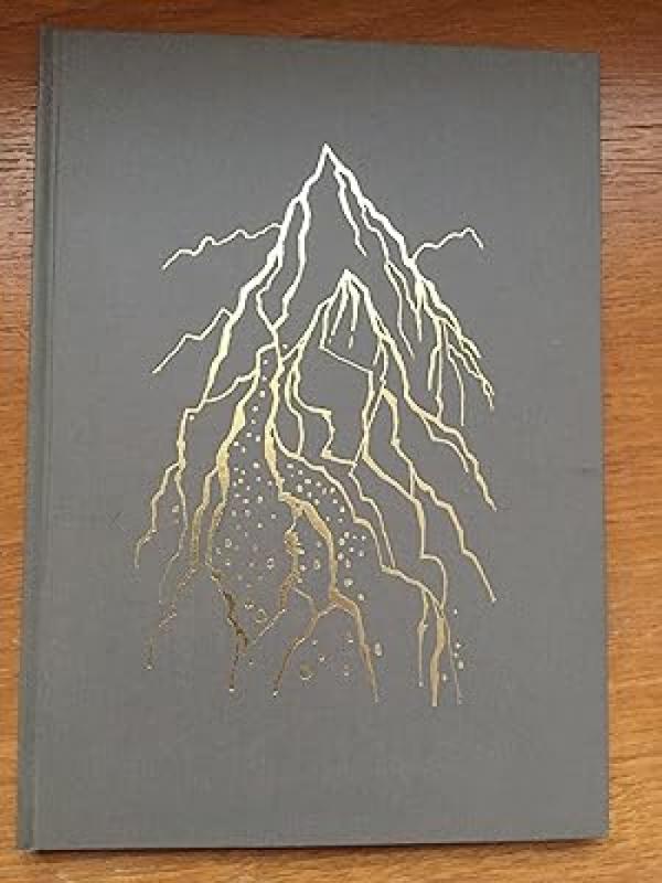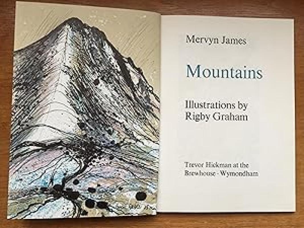 ‘Mountains’ ~ by Mervyn James; pub by Brewhouse Press 1972; illustrated by Rigby Graham, Number 197 of Limited edition of 200 numbered copies; bound in fawn coloured cloth with illustr on front cover and title on spine, both in gilt; front & end papers are coloured illustr by Rigby Graham; 7” x 10”, 48pp; includ coloured & b&w illust and 1 double (8 pages) gatefold; some slight foxing and brown marks on several back pages, o/w vg condition. Was £60 now £40.