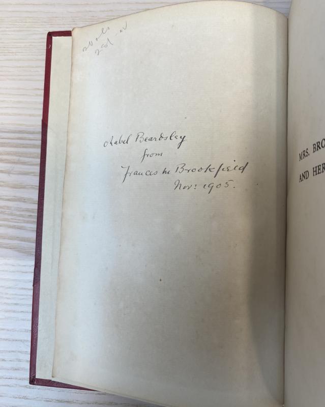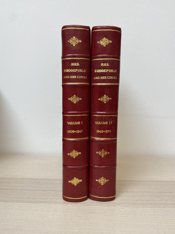 Two volumes. Inscribed by co-author Mrs. Frances Brookfield to Mabel Beardsley, sister of Aubrey Beardsley. Rebound in recent scarlet half calf with gilt titles, bands & upper edges. Occasional light scuff to the leather, one mark to the tail of the spine of volume I, extremities lightly bumped. Renewed endpapers. Author's inscription dated 1905 to front blank. Illustrated with fifteen photogravures, eachcomplete with tissue guards (protective tissue guards foxed & age-toned); collated & complete. An interesting inscribed autobiographical work detailing the life of theatre socialite Frances Brookfield, gifted by the author to popular contemporary actress Mabel Beardsley.