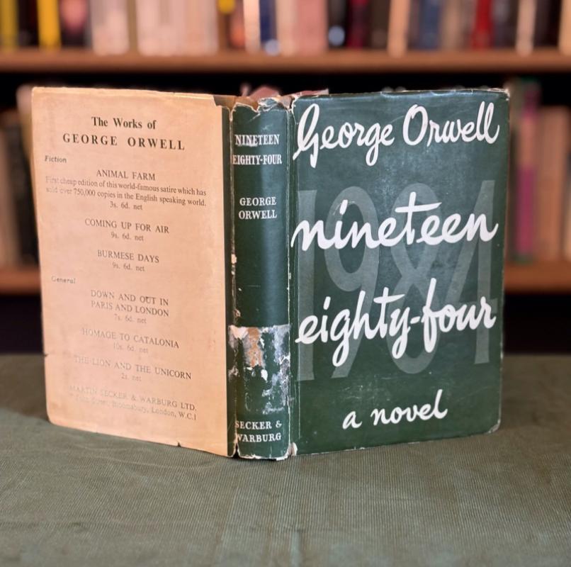 A true first edition of Orwell's dystopian masterpiece, presented in its rare green variant dust jacket. Orwell's ninth and final completed book, Nineteen Eighty-Four has become synonymous with the modern critique of surveillance culture. The novel's chilling vision of totalitarianism and surveillance has unfortunately only become more relevant over the decades.