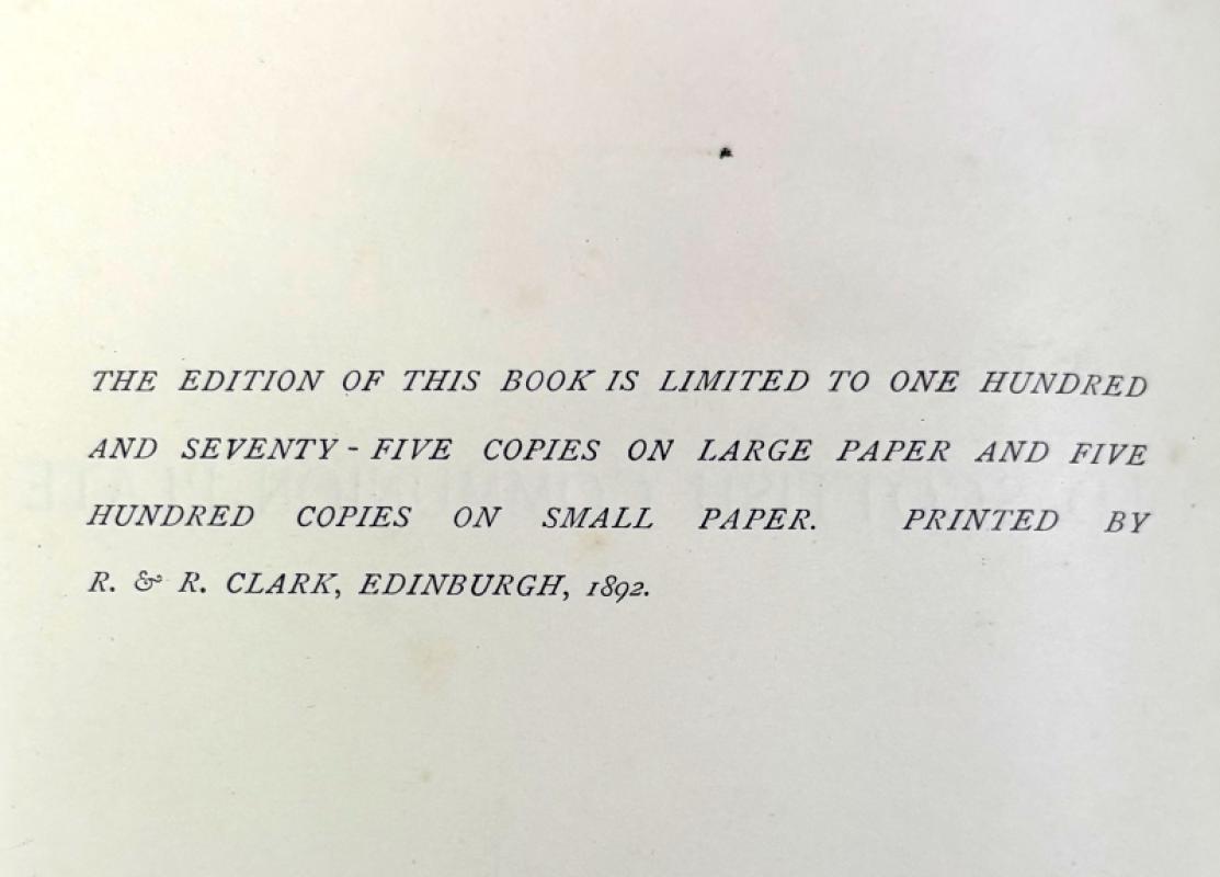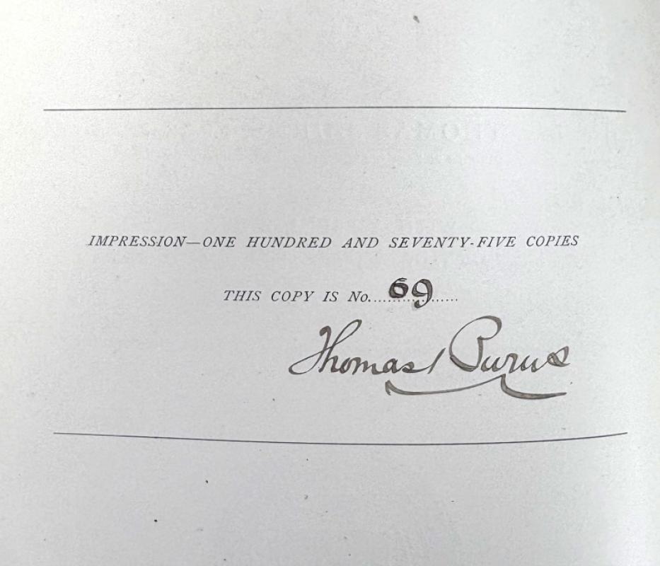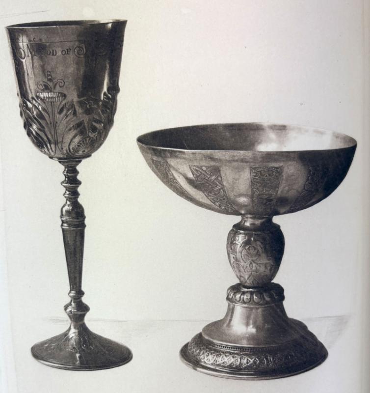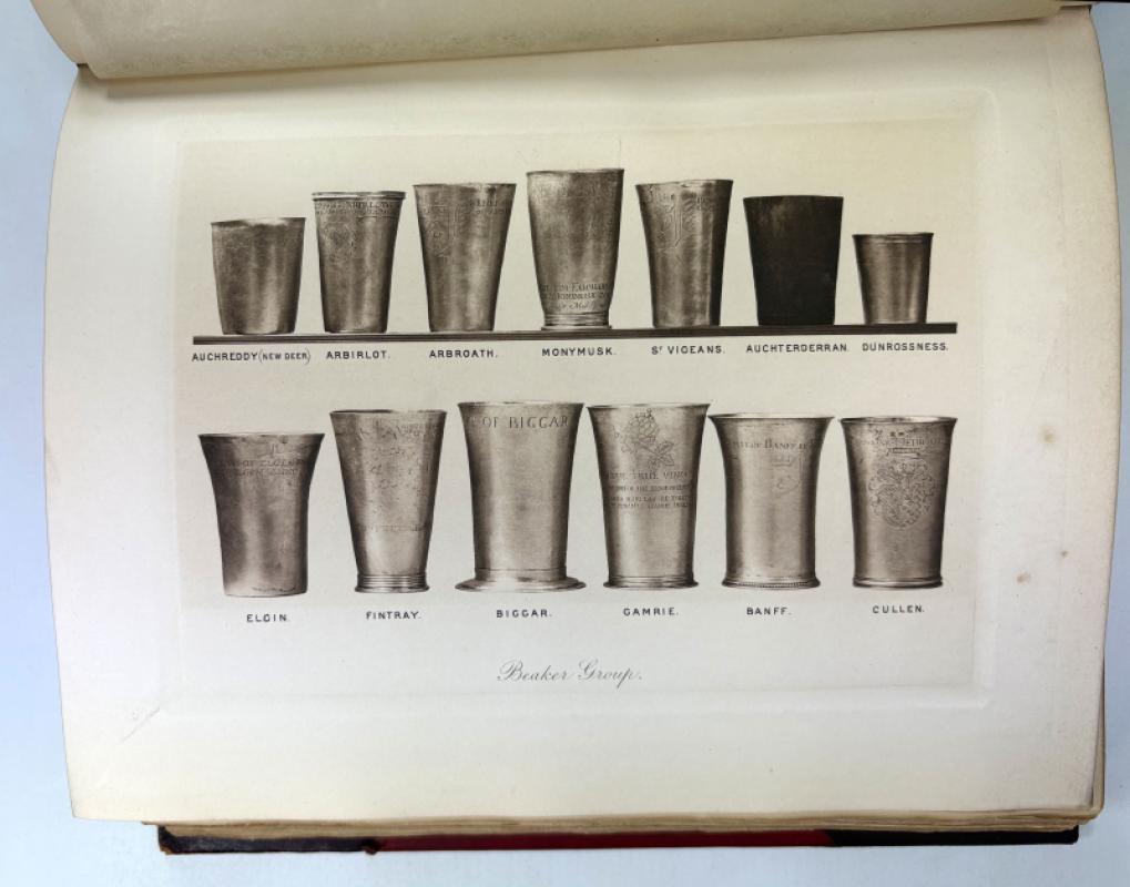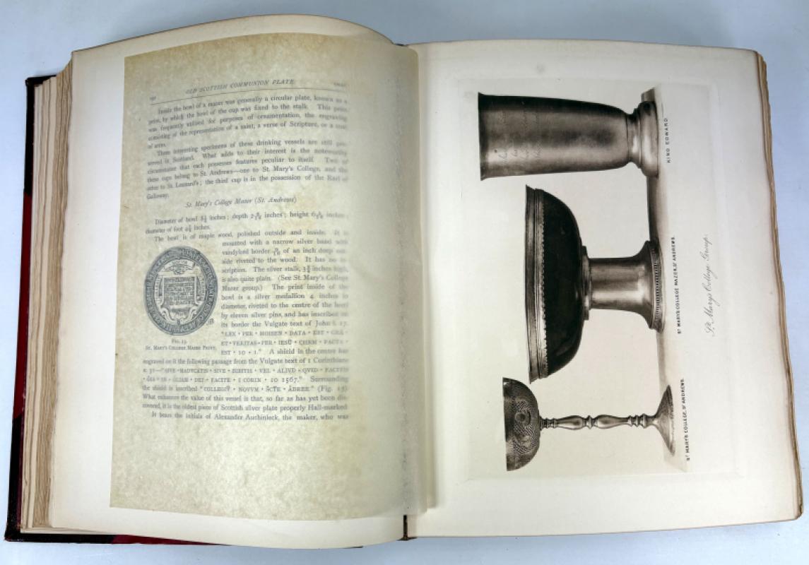 A substantial and scholarly late-Victorian study of Scottish ecclesiastical silver. Rev. Thomas Burns’s Old Scottish Communion Plate (1892) remains the definitive reference work on the subject, documenting the design, history, and use of communion vessels across Scotland. The volume includes a preface by the Moderator of the General Assembly, James MacGregor, and valuable chronological tables of Scottish hallmarks compiled by Alexander J.S. Brook. Illustrated throughout with numerous plates and engravings, it is both an important work of church history and a key reference for collectors of Scottish silver. Old Scottish Communion Plate, by the Rev. Thomas Burns, F.R.S.E., F.S.A. Scot., Minister of Lady Glendorch's Parish, Edinburgh. With a Preface by The Right Rev. James MacGregor, D.D., St Cuthbert's, Moderator of the General Assembly, and Chronological Tables of Scottish Hall-marks prepared by Alexander J.S. Brook, F.S.A. Scot. Published in Edinburgh by R. & R. Clark, 1892. Limited to 175 copies on large paper. This numbered 69 and is signed by the author. A good hardback in original Publisher's binding - burgundy leather spine and corners with gilt decoration, rules and titles. With red cloth over boards with gilt title and roundel to front cover. The covers with some rubbing, bumping and wear. Outer joints are rubbed, but all soundly bound. Text is bright and clean throughout, with clean and attractive plates. Burgundy endpapers with some rubbing. With gilt top edge to text block. A very usable copy of this substantial and comprehensive work. Text in English. xxx + 651pp + Numerous illustrations and Plates (some with tissue guards). Dimensions: approximately 295mm high x 248mm wide x 72mm. Approximate weight 3.5kg (unpacked).