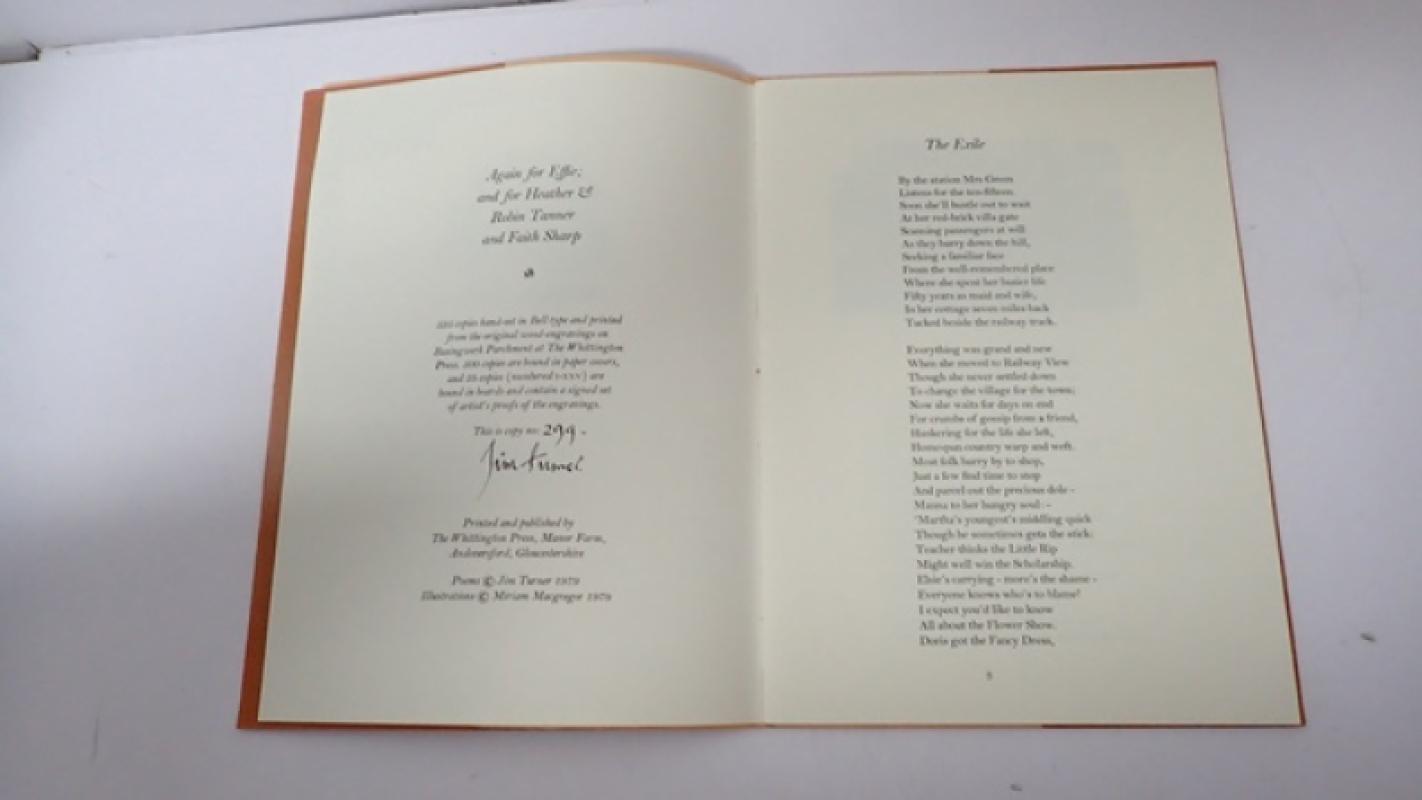 No. 299 of only 525 copies printed. Signed by Jim Turner. Orange card covers with black lettering to front. Boards are generally in very good order. No particular bumping or wear to corners or board edges. Slight fading to spine. Textblock is tight, bright and clean. 32 pp. 9 b/w illustrations. When securely packed this item will weigh in the region of 218g. (YBP Ref: 035323:15e)