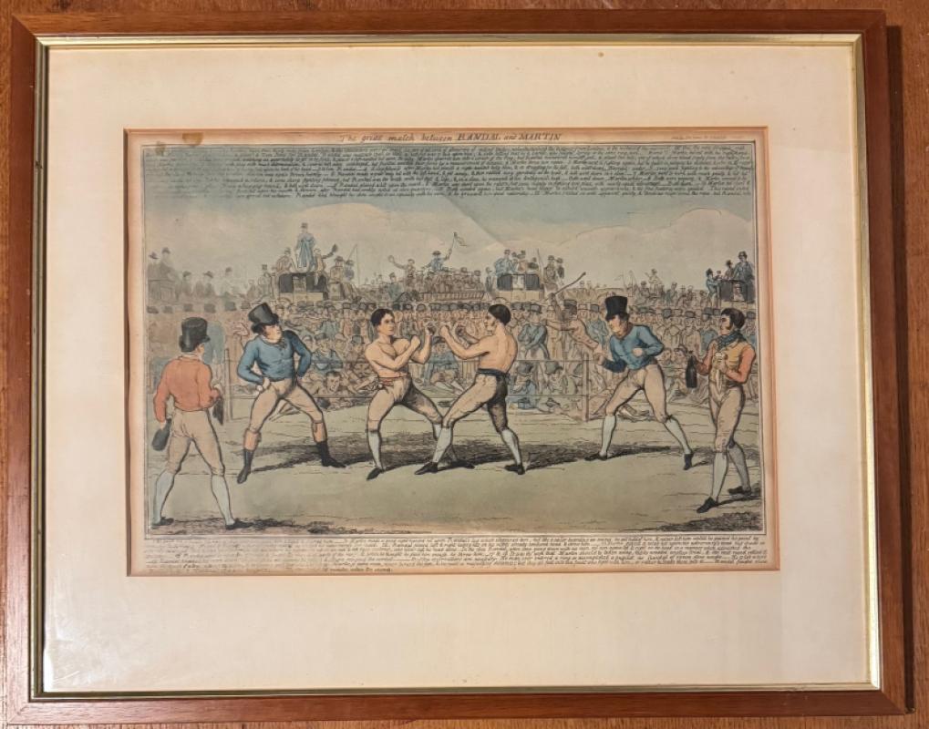 Ad II: “The great match between Randal and Martin”. Handcoloured engraving, ca.20,8 x 29,8 cm., published by Fores, London, undated (ca. 1819), framed.