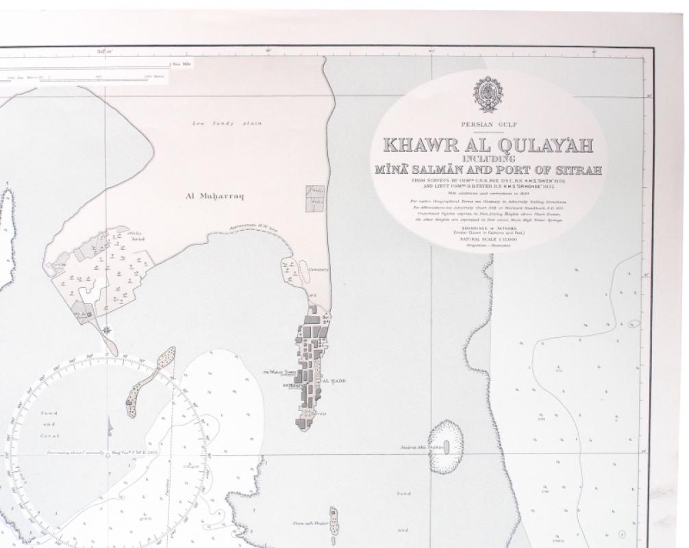 Persian Gulf. Khawr al Qulay‘ah including Míná Salmán and Port of Sitrah. From Surveys by Comdr. C. R. K. Roe D.S.C., R.N. H.M.S. “Owen” 1959. With additions and corrections to 1964 [1973].
