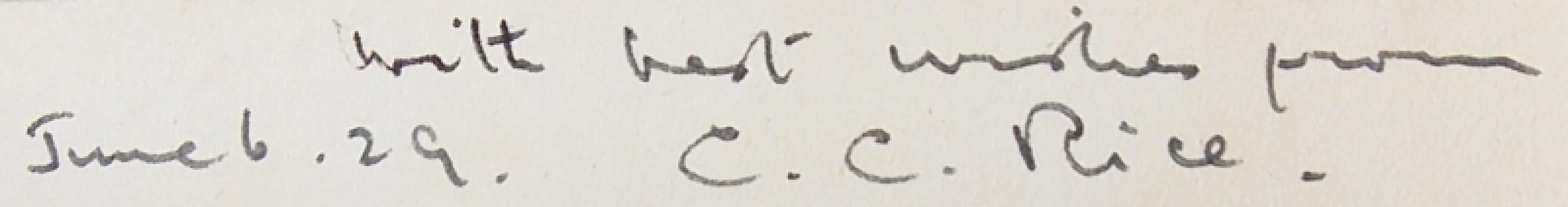 First edition. 8vo. pp. 312; photo. illusts., sketch map; browning to endpapers, else very good in original cloth, minor soiling. A presentation copy from the author, inscribed to head of title-page “With best wishes from C. C. Rice June 6.29”.