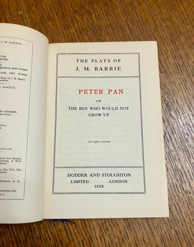 FIRST EDITION. 8vo. (7.2 x 4.9 inches). Bound in publishers delux blue limp leather binding with circular gilt JMB device on front board and gilt decoration and lettering to spine. Top edge gilt. Marbled endpapers. A tiny nick to the very top of the spine, without any loss to the leather, otherwise a near fine, bright copy. Scarce in this delux binding. This is the first edition of the play, and was issued as a volume in the uniform edition of the Plays.