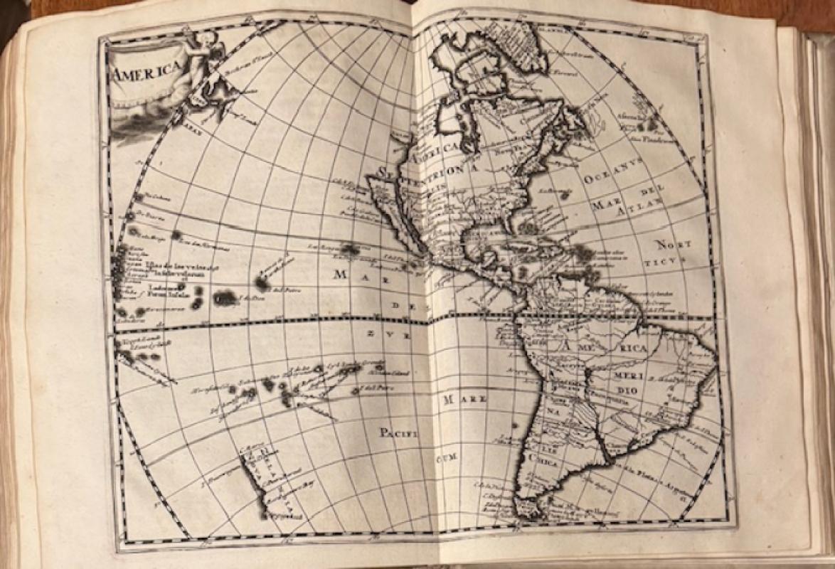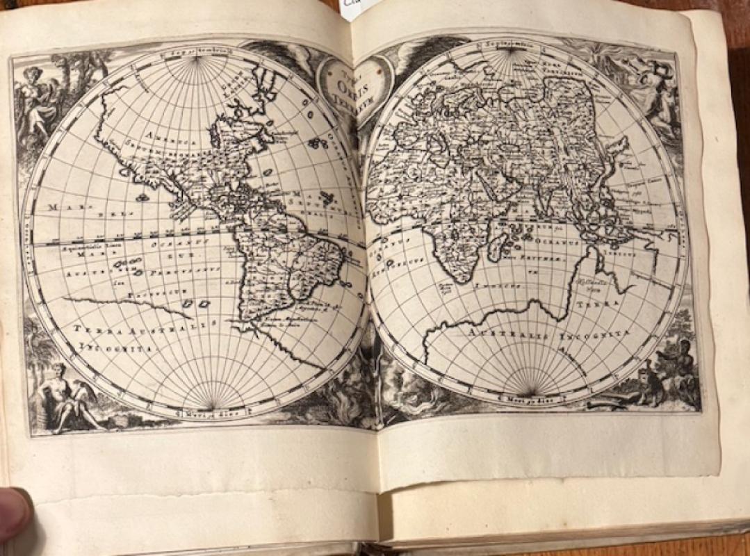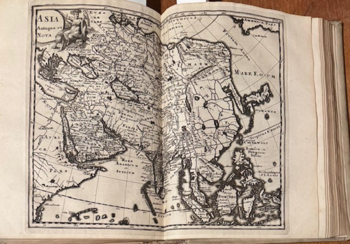 = Beautiful copy with the maps and plates in dark impressions. This 1697 edition is the first in quarto format with much improved maps. Philips 4270; Sabin 13805; NDB III,295. With the worldmap (Shirley 586 w. ill.), the 4 continents (for America, see Burden 360), 29 maps of Europe, 7 of Asia and 2 of Africa.