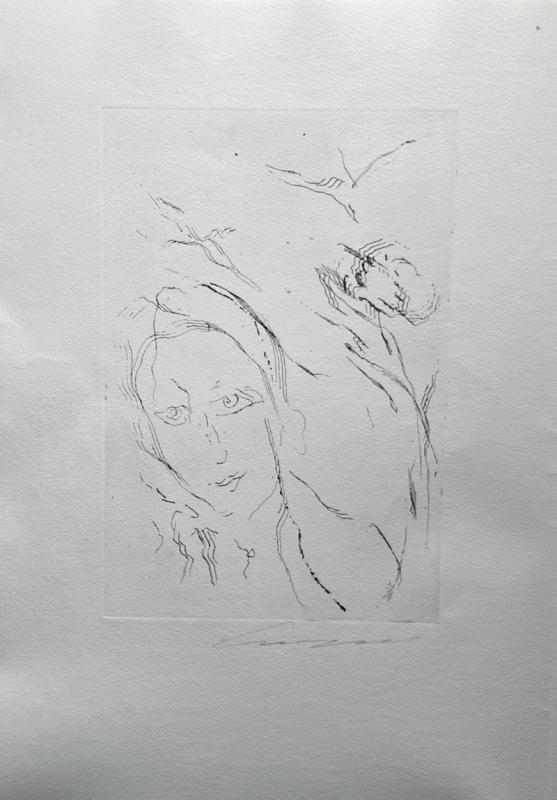 Folio, 6 leaves, etched frontispiece by Treccani signed in pencil, title page in blue and black, colophon on leaf 5r with printer’s mark in blue, on heavy, handmade paper watermarked with a cat from the printer’s mark, contained in the original publisher’s potfolio of blue cloth, fine.