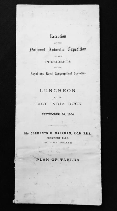 Printed table setting for Luncheon at East India Dock for Capt Scott's National Antarctic Expedition 1904