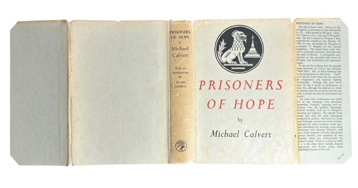London: Jonathan Cape, 1952. First edition, first printing. This is a very good (or better) copy. The dust jacket is sunned at the spine and has some general shelf wear throughout – some very slight loss at the spine tips. It has been neatly price clipped but retains the price (16s. net). The text blocks are generally clean, but with the odd spot of foxing. The red top stain slightly dulled. The boards are sharp, but the bottom right-hand corner is lightly bumped. Complete with the map to the rear. To the front fly leaf, Calvert has written a lengthy inscription to Michael Freshney, Lieutenant and commander of the Burma Rifles section in Chindit Column 1. In blue ink, it reads: ‘To my friend, Malcolm Fresney, | On page 220 I give a deserved tribute | to that very five body of men, the Officers | of the Burma Rifles, and quote General | Wingate as saying “they were the finest body | of officers any unit ever possessed.” |